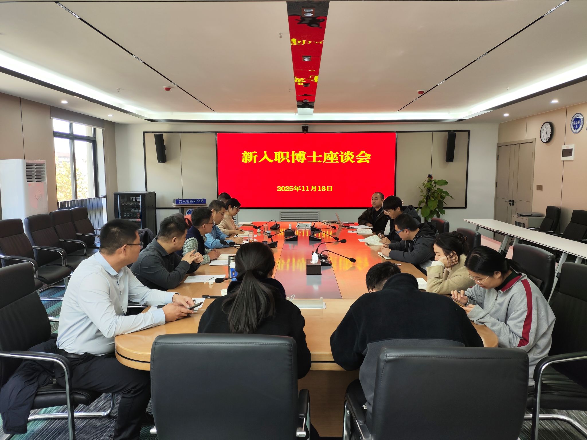 紧接着,研究院召开了各中心负责人会议与新入职博士座谈会。
